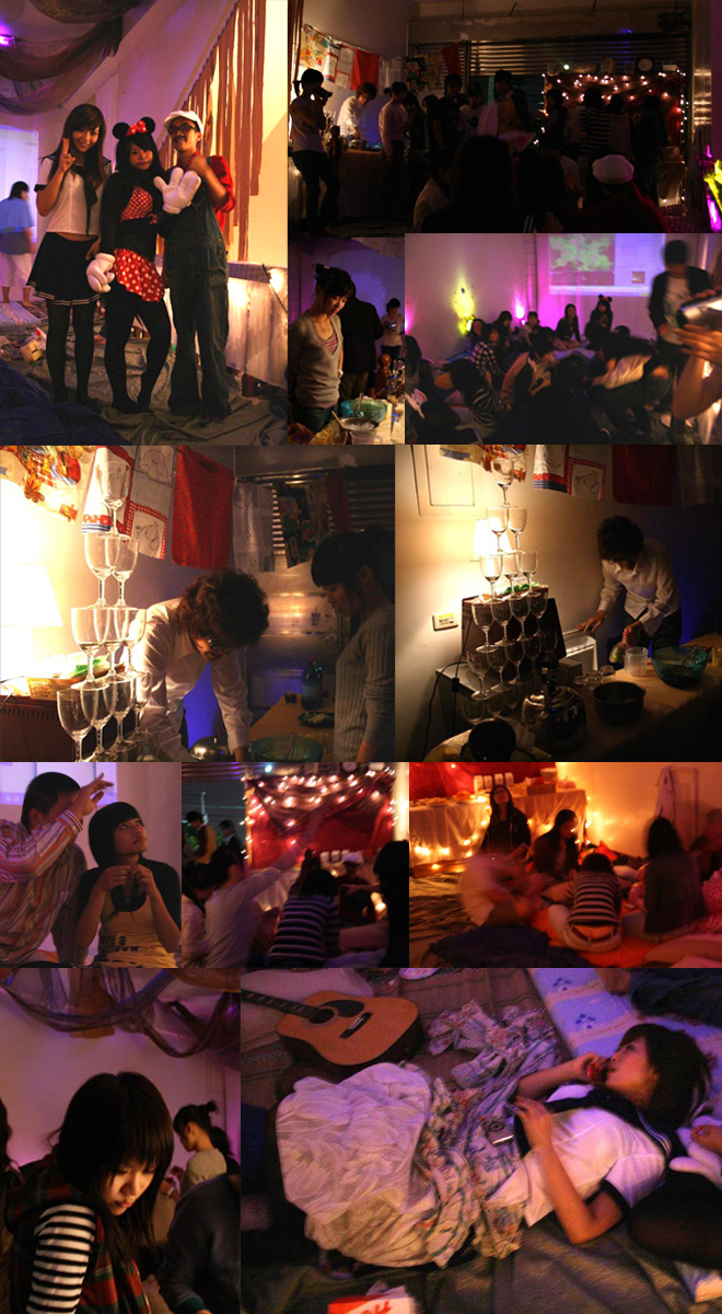 在崩世光景樂團的“it's all gonna break”音樂聲中非常依依不捨地送走了隔天上學還會見面的同學們,六位主辦人留下來看著殘留的杯盤、凌亂的地毯墊子、喝些調酒吃些零食、用投影螢幕玩一下PS2,算一下收支有沒有平衡(活動辦完後共虧損:新台幣1000元,由兩位壽星各自補貼500元),六個人都露出了滿足的神情,似乎不需要再多說什麼,但過了幾秒,鯉魚拉拉我的袖子,跟我說:“我真的沒想到事情會這樣發生耶,沒想到玩得這麼開心,像做夢一樣。真的很謝謝你,讓我們可以一起作這些事。”